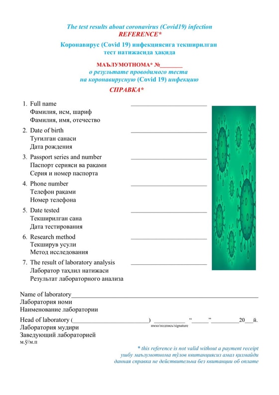 В Узбекистане вводятся единые справки с отрицательным результатом ПЦР теста на COVID-19, сообщил пресс-секретарь Минздрава.