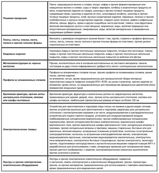 Основные группы товаров, по которым отменен акцизный налог при импорте: