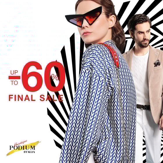 В бутикe Podium Italia стартовал Final Sale. Это значит, что теперь скидки на летние коллекции топовых брендов, представленных здесь, достигают 60%. Podium Italia приглашает всех на летний шопинг.