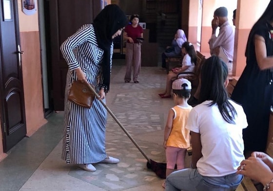 Проходя по коридору, увидел, как ребенок пролил сок. Попросил мамочку следить за ребенком. Никто не требовал протирать полы, хотя в том, что женщина уберет за своим малышом, ничего ужасного не вижу. Я лишь попросил подобрать мусор, брошенный ее ребенком, и показал, в какой стороне уборная в ответ на ее вопрос, — такое пояснение дал начальник отдела миграции и оформления гражданства Юнусабадского района капитан Умаров Азизжон.