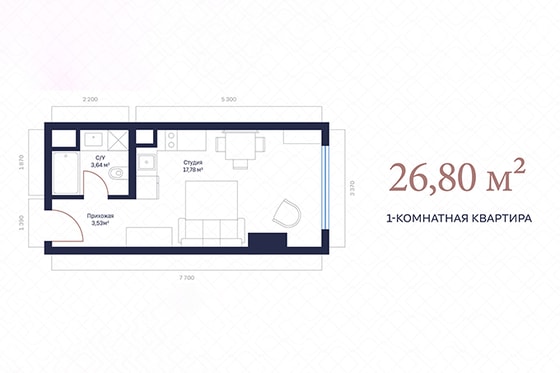 На данный момент в проекте остались 10 ликвидных студий площадью 26,8 м².