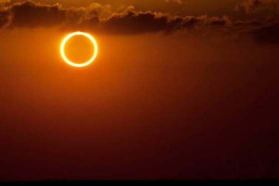 Кольцеобразным солнечным затмением называется явление, когда Луна затмевает центральную часть Солнца, образуя вокруг себя тонкое яркое кольцо. Величина затмения увеличивается в зависимости от того, насколько близко Луна находится к Земле, например, во время кольцеобразного солнечного затмения Луна находится на удаленном участке своей эллиптической орбиты вокруг Земли.