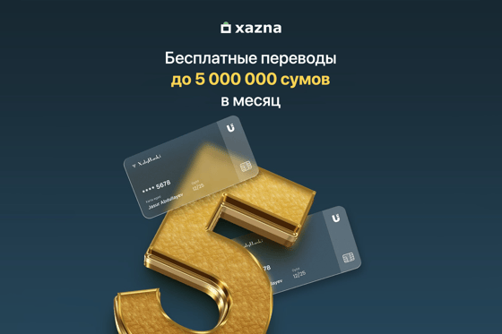 С помощью приложения «xazna» можно совершать бесплатные переводы между банковскими картами до 5 000 000 сумов в месяц. Также переводы денежных средств между банковскими картами Humo и между всеми картами Xalq banki – абсолютно бесплатны.