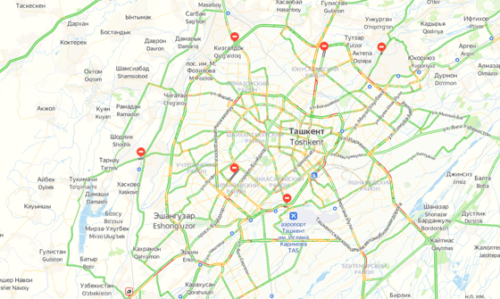 Больше всего перегружены улицы Фараби, Малая кольцевая, Сакичмон, Шарафа Рашидова, Богишамол, Аккурган, Паркент, Шахрисабз, Коратош и Мустакиллик.