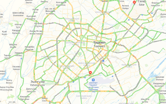 Больше всего перегружены улицы Осиё, Сагбан, Карасарайская, Коратош, Фергана Йули, Махтумкули, Мехржон, Гейдара Алиева, Бабура, Лутфи, Фархад, Паркент и МКАД.