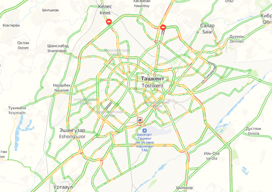 Больше всего перегружены улицы Сагбан, Сакичмон, Фараби, Абдуллы Кадыри, Паркент, Тимура Малика, Чулпан, Ахангаран Йули и МКАД.