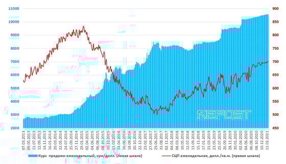 Кроме проводимых карантинных мероприятий на рынок жилья негативно влияет резкая девальвация национальной валюты, проведённая ЦБ в целях обеспечения эффективного курса сума по отношению к национальным валютам стран-соседей, прежде всего, это относится к РФ и Казахстану.