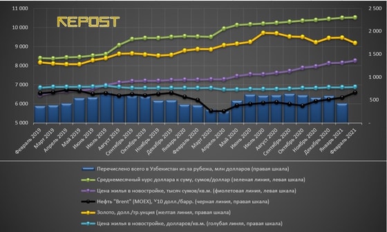 Поддержку рынку жилья оказывают и денежные переводы из-за границы. Наблюдается восстановление объёма поступлений денежных средств от трудовых мигрантов. Ранее озвученные прогнозы по сокращению объёмов переводов в Узбекистан оказались более пессимистичными.