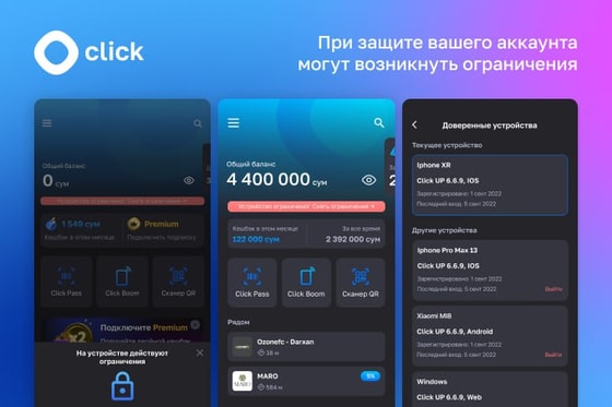 Проходя идентификацию, вы закрепляете за своим аккаунтом свои биометрические данные — лицо пользователя, ФИО, и другие данные, которые сверяются с информацией, имеющейся в государственной базе биометрических данных. Ваша личность становится идентифицированной в Click и теперь, если злоумышленник завладеет аккаунтом с чужого устройства, попытается вывести деньги или поменять PIN-код – включится защитный режим, который заблокирует такие действия.