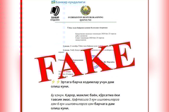 В социальных сетях и мессенджере Telegram распространяется информация о якобы выходном дне в связи с празднованием Дня узбекского языка 21 октября. Данную информацию опровергли в официальном Telegram-канале AntiFake.uz.
