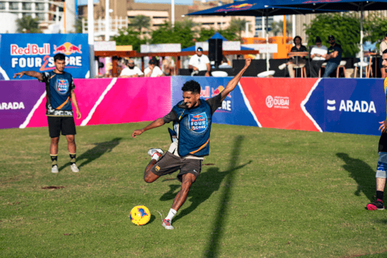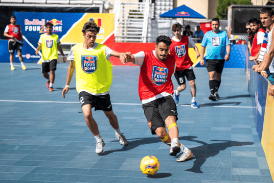 Red Bull Four 2 Score — это футбольный турнир на малом поле в формате 4 на 4. Матчи длятся 10 минут, без перерывов и вратарей. Особенность турнира в том, что голы, забитые в первые и последние 60 секунд игры, приносят по 2 очка. В соревновании участвуют более 25 стран, а победители получают шанс сразиться в финале мирового чемпионата в RB Leipzig, Германия.