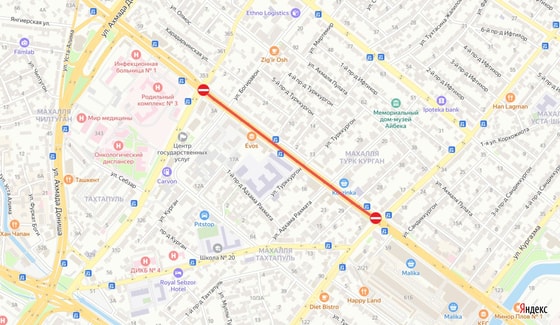 В связи с этим с 22:00 28 апреля до 22:00 29 апреля будет ограничено движение на участке Малой кольцевой автомобильной дороги от перекрестка с улицей Тахтапул Дарвоза до перекрестка с улицей Ифтихор.