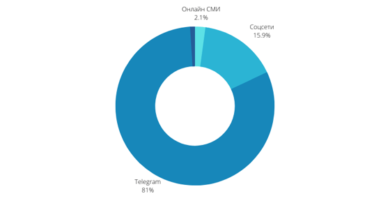 Наибольшая доля упоминаний пришлась на самую популярную платформу в Узбекистане Telegram. Порядка 16% упоминаний выявлены в соцсетях.
