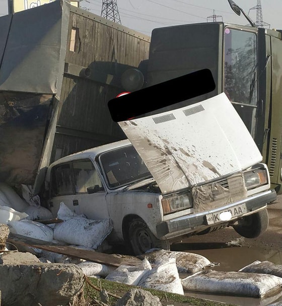 В результате происшествия легковой автомобиль был практически раздавлен. К счастью, внутри него не было водителя и пассажиров. Грузовой автомобиль был загружен мешками с сахаром и опрокинулся. В результате происшествия никто не пострадал, сообщили в пресс-службе ГУВД Ташкента.