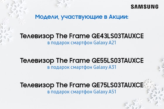 придется выбирать – при покупке телевизора-картины The Frame от Samsung покупатель получает смартфон Galaxy серии A и интерьерную рамку в подарок.