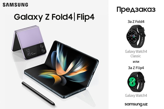 Флагманы уже доступны по предзаказу в Узбекистане. предзаказ на Galaxy Z Fold4| Z Flip4 продлится до 1 сентября включительно. Первые покупатели получат ценные подарки: смарт-часы Galaxy Watch4 и Galaxy Watch4 Classic. Старт продаж — 2 сентября 2022 года.