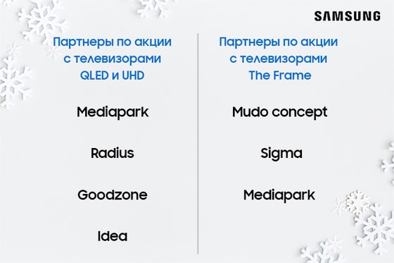 - Купите телевизор Samsung The Frame и получите смартфон Galaxy серии А и интерьерную рамку в подарок.