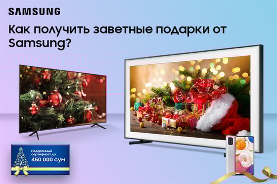 - Купите телевизор Samsung QLED или UHD и получите сертификат до 450 000 сум в подарок;