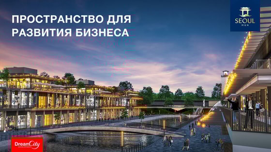 Территория проекта Seoul Mun — это два побережья канала Бурджар, на которых возводятся три уровня современной коммерческой недвижимости, а также огромное пространство для прогулок и отдыха у воды.