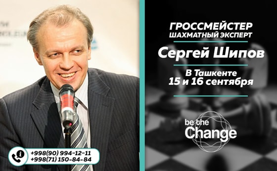 У поклонников шахмат есть уникальная возможность познакомиться, пообщаться и поучиться у легендарного гроссмейстера Сергея Шипова – 15 и 16 сентября шахматный эксперт приезжает в Ташкент. Программа этих дней будет насыщенной – состоится мастер-класс, лекция, блицтурнир и сеанс одновременной игры.