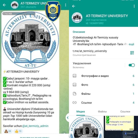 Как выяснилось, двое граждан открыли Telrgram-канал университета At Termiziy University. Они объявили о приеме на учебу. В результате 73 человека подали заявки и заплатили 306,9 млн сумов в качестве оплаты за обучение.