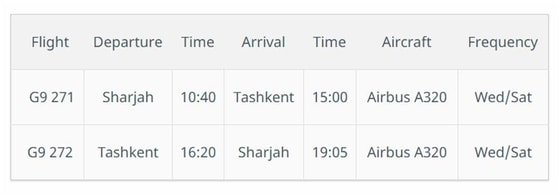 С ноября текущего года арабский лоукостер Air Arabia открывает прямой рейс в Ташкент. Первый рейс будет осуществлен 4 ноября. Об этом сообщается на сайте авиакомпании.