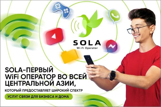 SOLA представляет доступ к Wi-Fi сети в пределах всего города всем пользователям домашнего оптоволоконного интернета Sola в рамках тарифного плана.