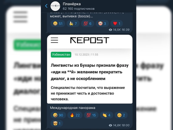 Пару недель назад Repost.uz писал о том, что лингвисты из Бухары признали фразу «иди на **й» желанием прекратить диалог, а не оскорблением.
