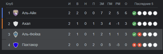 Положение узбекских клубов после сыгранных матчей: