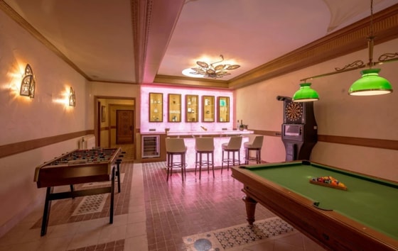 Общая площадь помещений – около 2 тысяч квадратных метров. Здание построено в 1899 году, в нем есть 30 комнат, а также крытый бассейн, домашний кинотеатр, тренажерный зал и корт для сквоша.