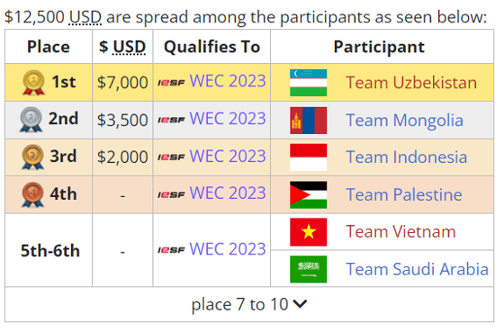 Узбекские киберспортсмены заработали $7 тысяч, а также квалифицировались на IESF World Esports Championship 2023 (призовой фонд турнира составляет $100 тысяч).