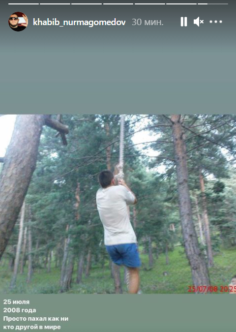 На фотографии, сделанном в 2008 году, можно увидеть, как Нурмагомедов лезет по канату.