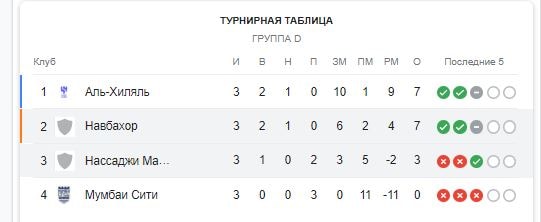 На каких местах располагаются команды из Узбекистана после сыгранных матчей: