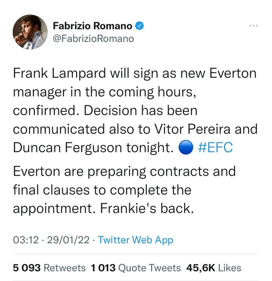 В итоге выбор пал именно на Лэмпарда, с которым уже удалось полностью согласовать контракт. Об этом сообщает журналист Фабрицио Романо в «Твиттере».