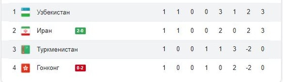 По итогам матча Узбекистан расположился на первом месте в группе Е.