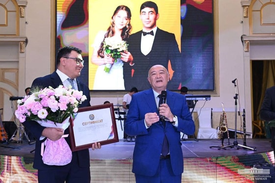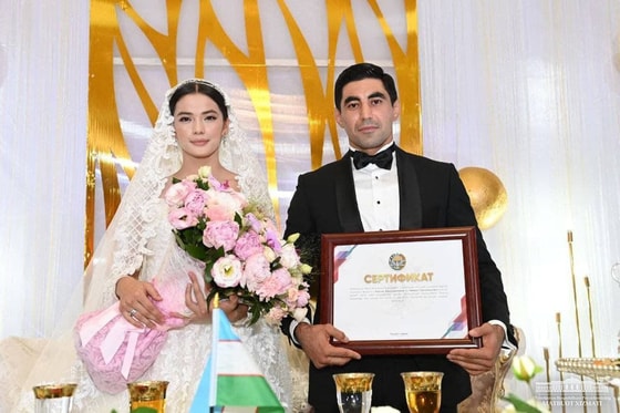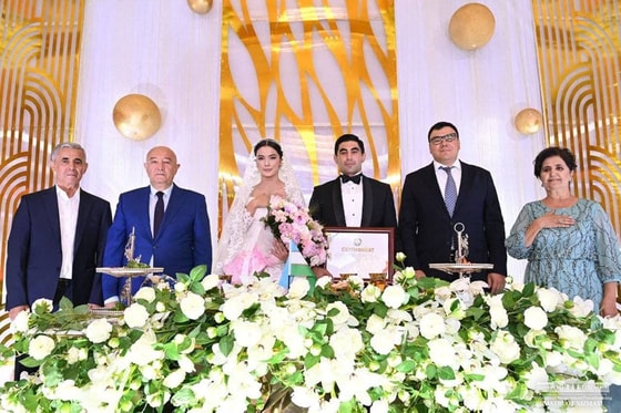 Стоит отметить, что сегодня, 14 августа, во время этого важного события молодоженам передали поздравления и подарки от имени президента.