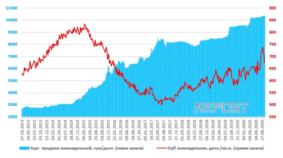 Кроме проведения карантинных мероприятий на рынок жилья негативно влияет резкая девальвация национальной валюты, проведённая ЦБ в целях обеспечения эффективного курса сума по отношению к национальным валютам стран-соседей, прежде всего, это относится к РФ и Казахстану.