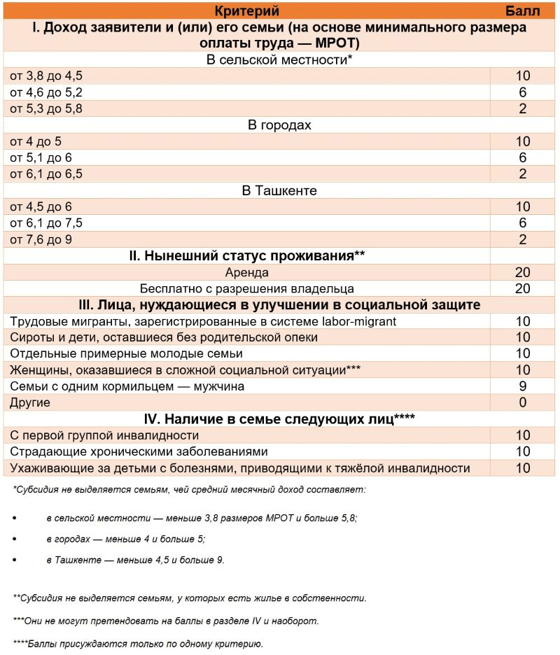 Субсидию могут получить граждане, отнесённые к нуждающимся. Оценка производится по социальным критериям, которые суммируются в баллы. Для получения субсидии необходимо набрать не менее 30 баллов.