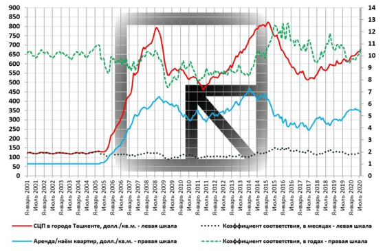 Если следовать американскому методу, то средняя стоимость найма квартиры в Ташкенте в сентябре 2020 года должна составлять 5,8 доллара/кв.м., что выше фактически сложившегося показателя (5,2 доллара/кв.м.).