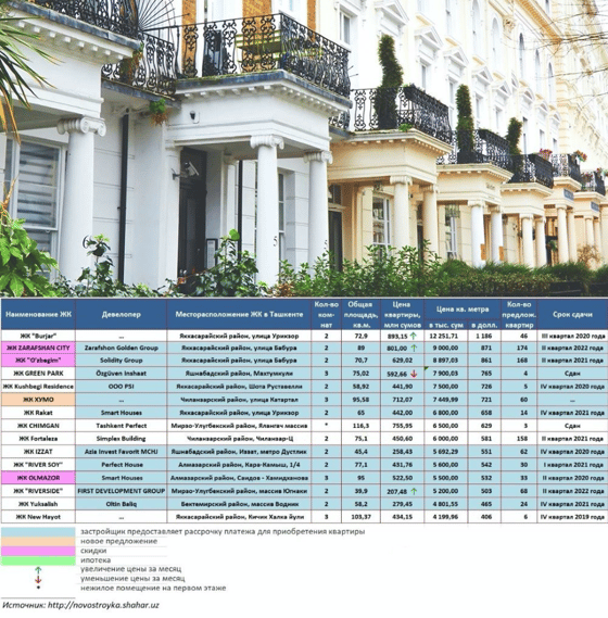 - в городе Ташкенте – для двухкомнатных квартир с 198 млн сумов до 264 млн сумов, квартир с тремя и более комнатами с 255 млн сумов до 352 млн сумов.