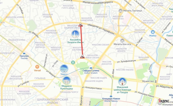 - улица Карасарай — от пересечения с улицей Абдуллы Кадыри до пересечения с улицей Нурафшон.