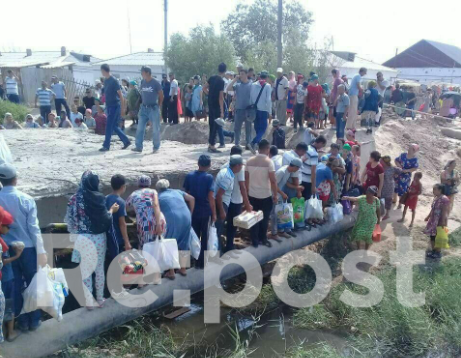 Отмечается, что за рекой находится рынок, куда жители района переходят по водопроводной трубе и даже выстраиваются в очередь.
