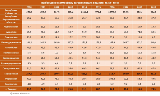 Начальник управления Госкомэкологии Узбекистана Умиджон Джалилов признал наличие проблемы так называемых мелкодисперсных частиц (МДЧ). «Единственный в стране датчик МДЧ установлен в посольстве США в Ташкенте. Согласно данным этого датчика, столица Узбекистана занимает одно из первых мест в мире по загрязнению воздуха такими частицами», – подчеркнул Джалилов.