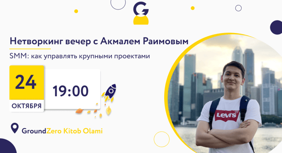 Акмаль расскажет о том, как управлять крупными проектами, как разрабатывать эффективные стратегии и работать в команде из 20 человек. Встреча будет интересна и тем, кто только делает первые шаги в этой сфере, и опытным специалистам.