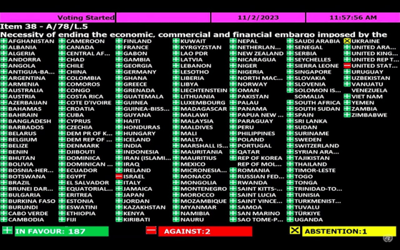 С 1992 года Куба ежегодно представляет на рассмотрение Генассамблеи ООН проект резолюции о необходимости отмены американского эмбарго.