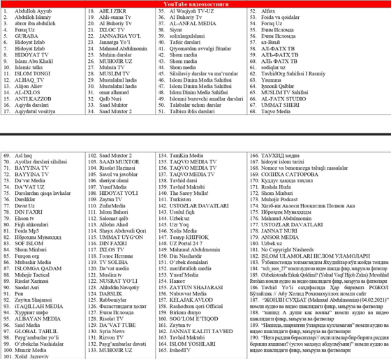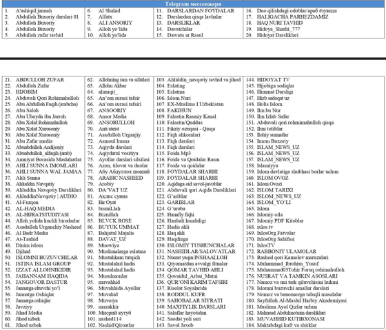 Верховный суд опубликовал обновленный перечень материалов, которые содержат идеи экстремизма и терроризма и запрещены к ввозу, изготовлению, распространению и показу на территории Узбекистана.