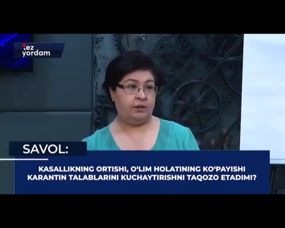 На сегодняшнем этапе распространения коронавируса в Узбекистане карантинные меры бесполезны. Такое мнение высказала иммунолог-инфекционистка Азиза Ходжаева в эфире программы «Тез ёрдам».