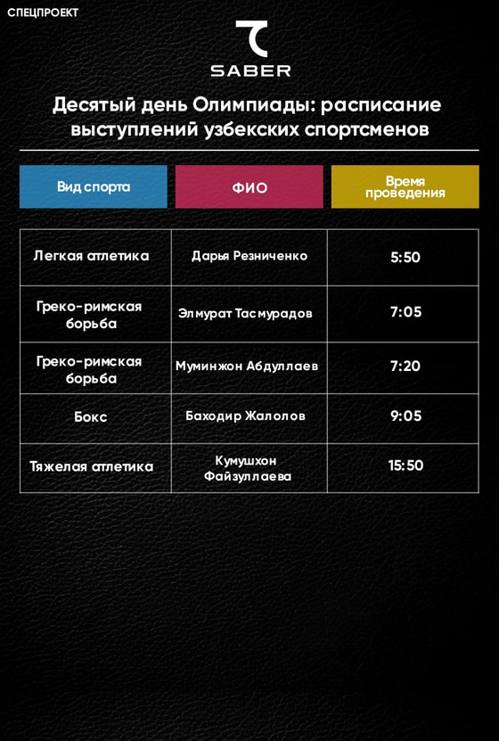 Итоги узбекских спортсменов девятого дня Олимпиады: