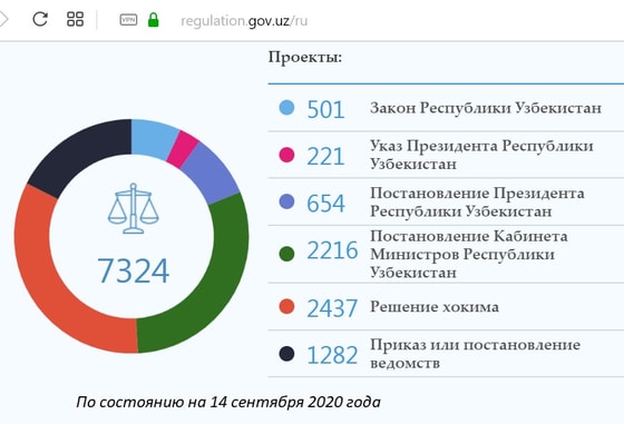 Однако, на портале размещаются не все проекты нормативно-правовых актов: действующее законодательство не содержит требования обязательного проведения их общественного обсуждения. Так, закон от 11 октября 2006 года «О порядке подготовки проектов законов и их внесения в Законодательную палату Олий Мажлиса Республики Узбекистан» лишь предоставляет такое право их разработчикам: «Субъект права законодательной инициативы до внесения в Законодательную палату проекта закона вправе организовать изучение общественного мнения…» (статья 16). Статья 13 закона от 14 декабря 2000 года «О всенародном обсуждении проектов законов» гласит: «Решение о всенародном обсуждении проектов законов принимается Законодательной палатой Олий Мажлиса Республики Узбекистан».