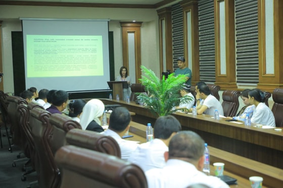 Пресс-тур начался с семинара-тренинга для представителей местных СМИ, журналистов и общественных активистов, а также, менеджеров территориальных ЦБУ Xalq banki.